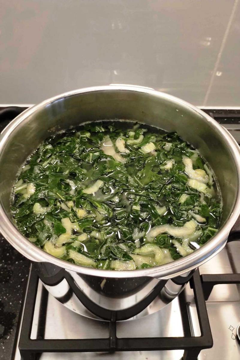- 750 g Mangoldstiele, 1 EL Essig, Salz